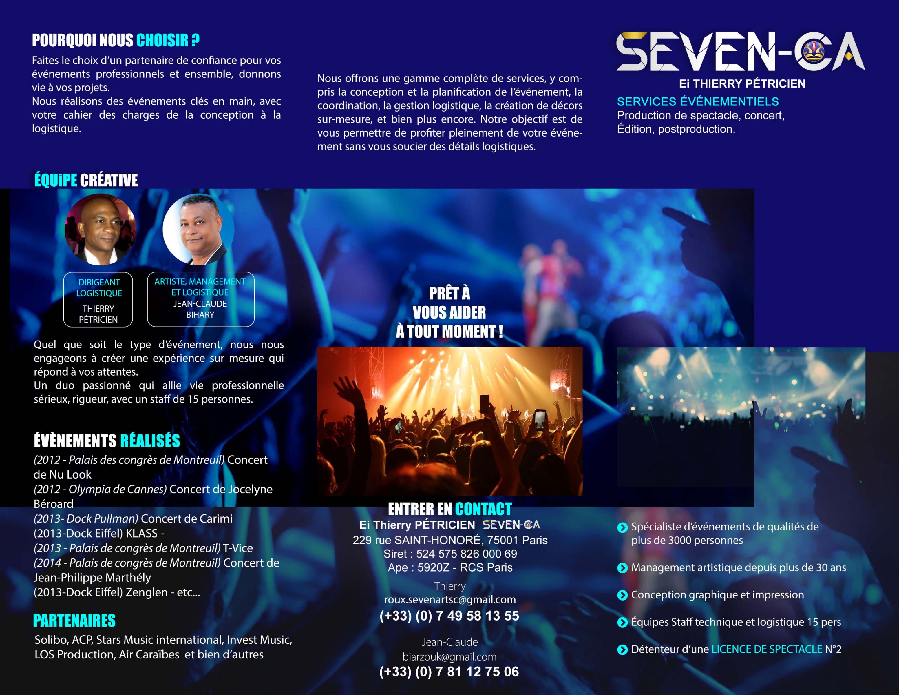 Ei Thierry Pétricien (Seven-ca), sait que chaque événement professionnel est une occasion unique de renforcer ses relations avec clients et collaborateurs. Que vous planifiiez une conférence, un séminaire, un gala, un concert, mes équipes se consacrent à transformer vos idées en expériences mémorables.