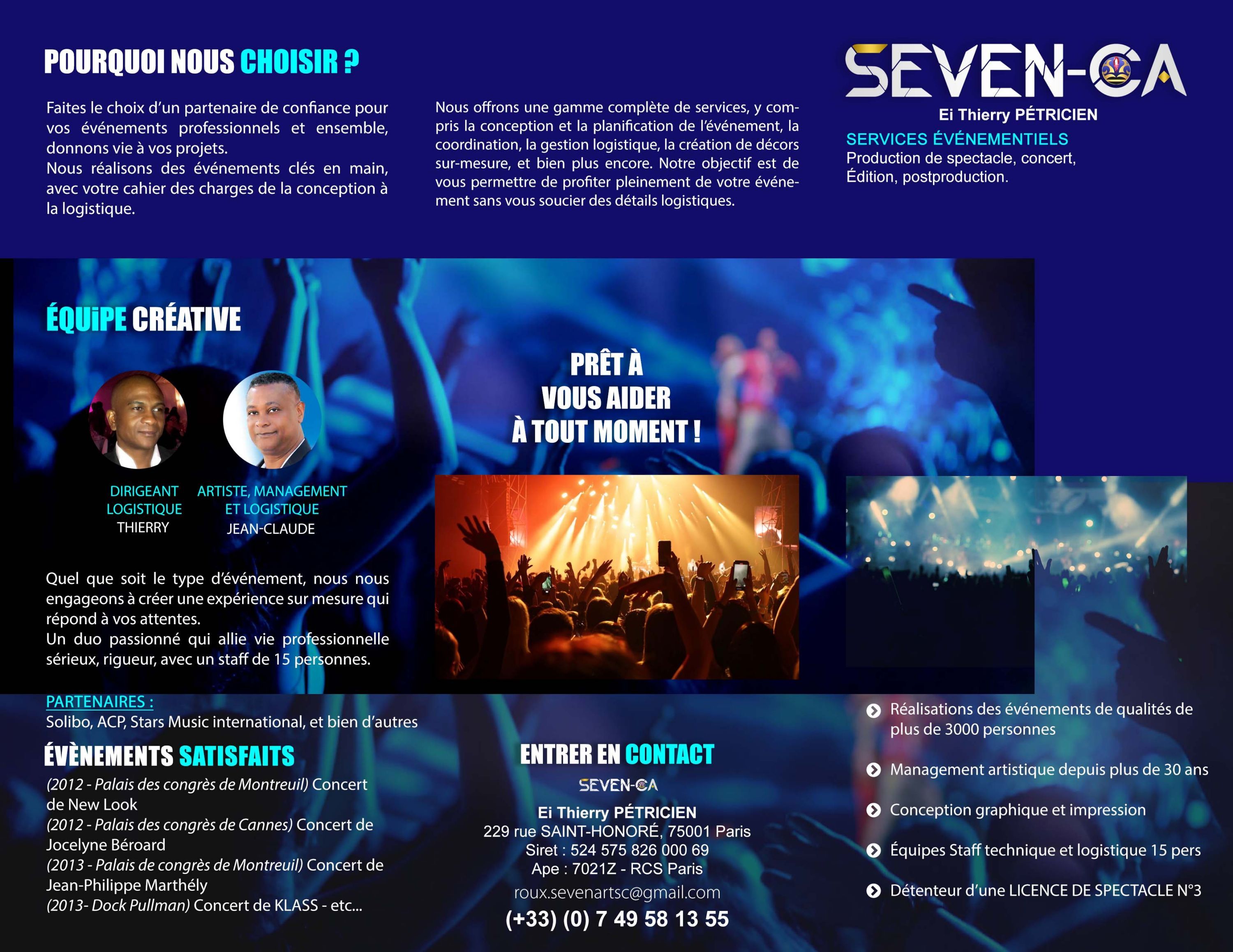 Ei Thierry Pétricien (Seven-ca), sait que chaque événement professionnel est une occasion unique de renforcer ses relations avec clients et collaborateurs. Que vous planifiiez une conférence, un séminaire, un gala, un concert, mes équipes se consacrent à transformer vos idées en expériences mémorables.
